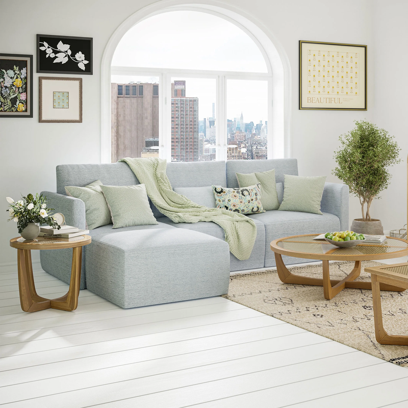 Rattan & Glass Side Table with Solid Wood Frame by Drew Barrymore, Warm Honey Fi