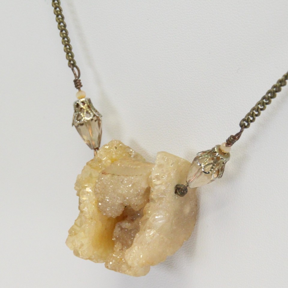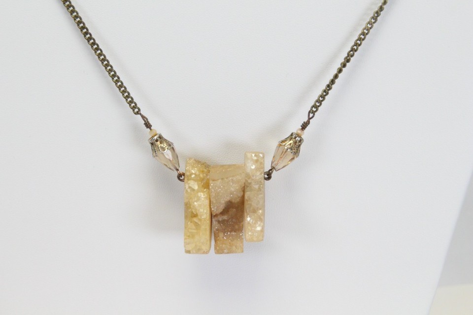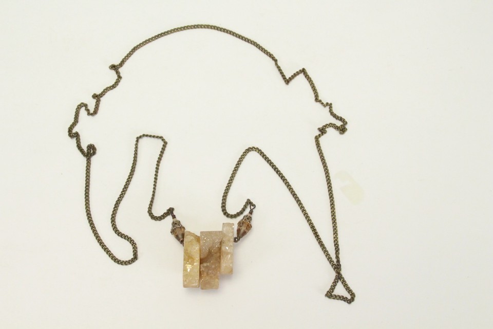 Vintage Quartz Crystal Necklace 32" Long Chain Crystal 3pc 1" H x 1.2"