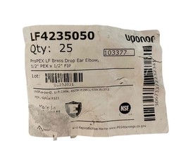NEW 25 PACK UPONOR LF4235050 PROPEX LF BRASS DROP EAR ELBOW. 1/2" PEX X 1/2" FIP.