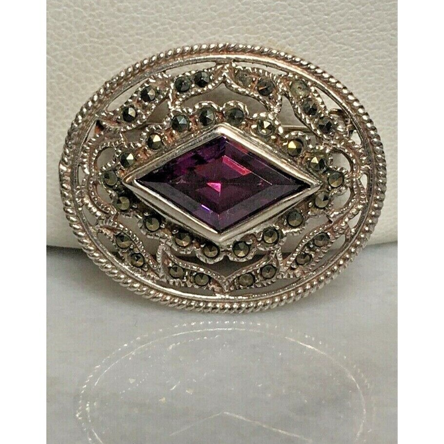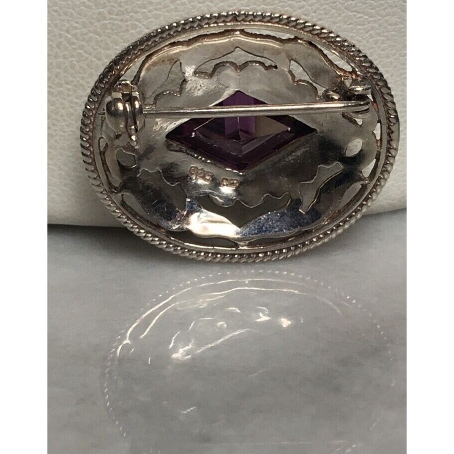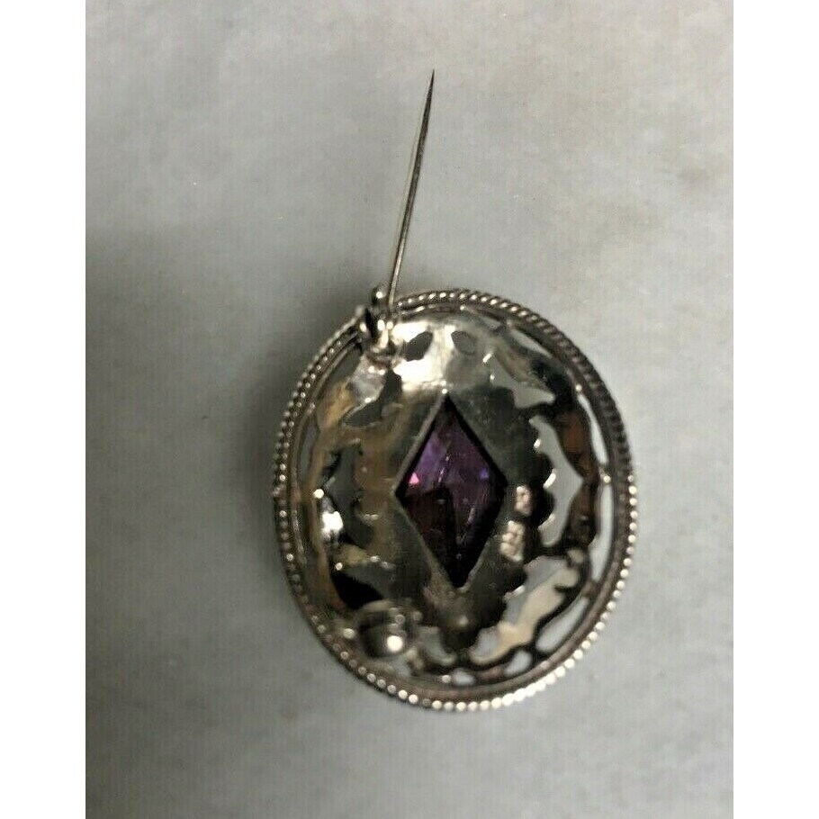 Beautiful 925 Sterling Silver & Purple CZ Accent Brooch Sky