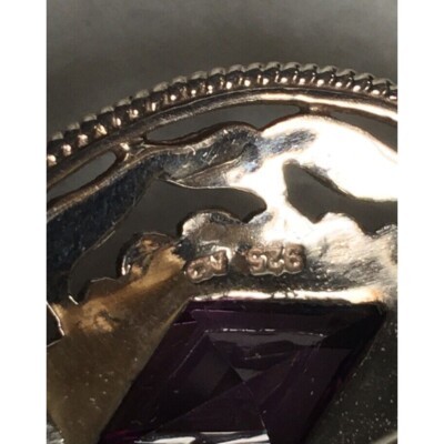 BEAUTIFUL 925 STERLING SILVER PURPLE CZ ACCENT BROOCH SKY