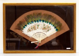 19th Century Qing Dynasty Peacock Fan in Frame Gorgeous!