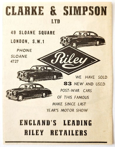 1954 Clarke & Simpson Riley Car Dealership Advertisement Automobilia E89G2