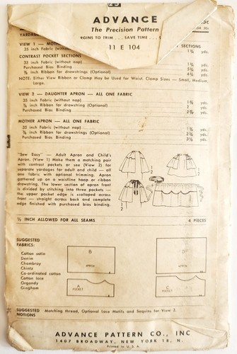 C1960s Advance Sew Easy Sewing Pattern Dress 6925 Mother Daughter Vintage E90B