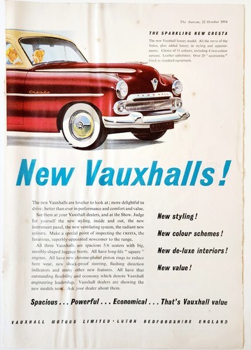 1954 Vauxhall Luxury Cresta Import Advertisement Autocar Automobilia DWPP12A