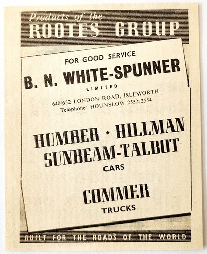 1954 White Spunner Rootes Group Services Advertisement Automobilia E89G1