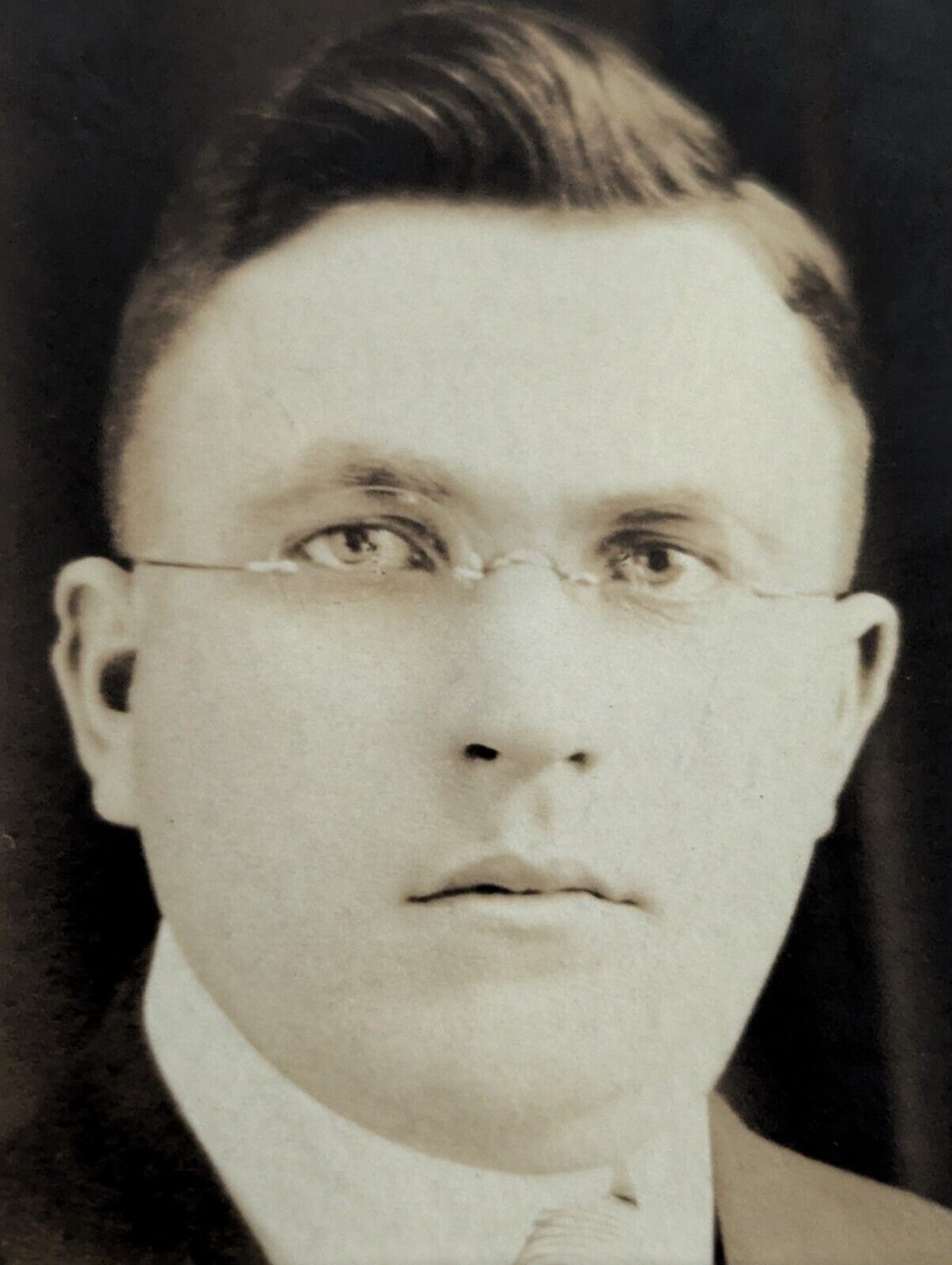 Uncle Albert? Man Glasses Suit Portrait RPPC Postcard AZO 4 Arrows Up Unposted