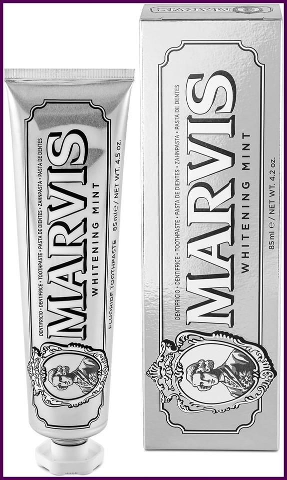 Product Description Marvis: An unforgettable smile and a whirlwind of pleasurable sensations awaits Experience luxury oral hygiene with Marvis. Reveal a brighter, more confident smile as this cocktail of cleaning agents work to promote the natural whitening of the teeth. Developed to keep teeth and gums in tip-top shape, the Marvis toothpaste helps brush away plaque and prevent tooth decay. A creamy, rich texture infused with a sharp, invigorating mint flavour injects some excitement into the teeth-cleaning ritual. Housed in stylish, elegant tubes, Marvis oral hygiene products are the talking point in any modern bathroom. Product benefits:Promotes the natural whitening of the teeth for a brighter smileHelps remove plaque and prevent tooth decayCleans, conditions, and protects teeth Unforgettable mint flavour freshens breath for longerLuxurious colourful tube elevates any bathroom Ingredients Glycerin