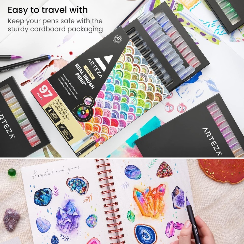Unleash Your Creativity: Arteza's 96-color pack of real brush pens offers vibrant, artist-quality colors, allowing you to bring your artistic visions to life. Perfect for sketching, drawing, painting, and calligraphy - our watercolor markers open the door to a world of creative possibilities.