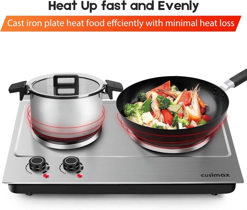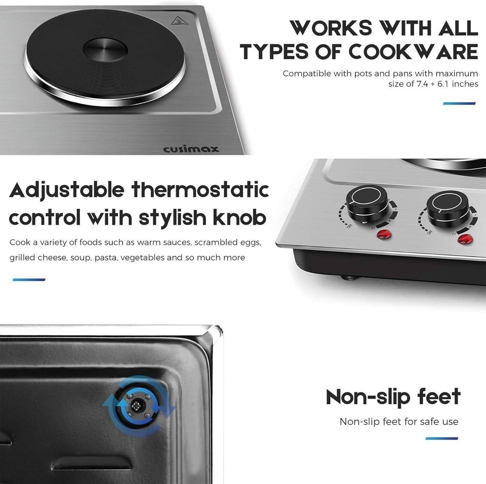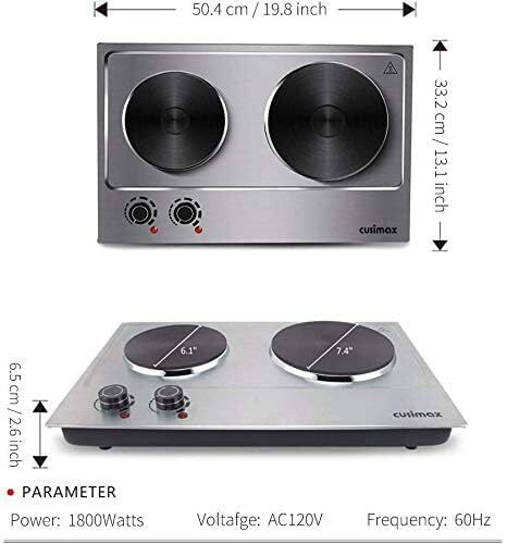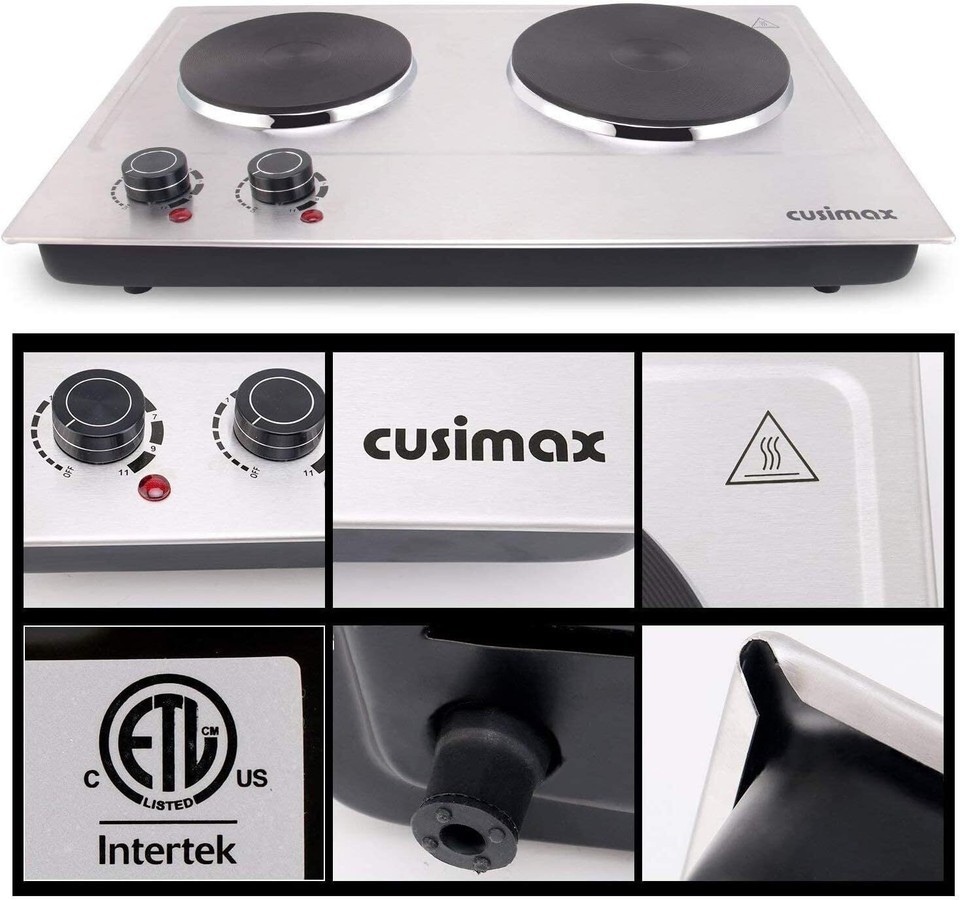 CUSIMAX 1800W Double Hot Plate, Stainless Steel Silver Countertop Burner