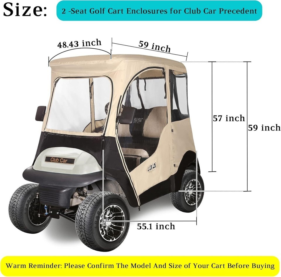 2 Passenger golf cart enclosure size: 59"L x 39.5"W x 57H Inch, Universal cover fits for Club Car Precedent 2-person golf cart