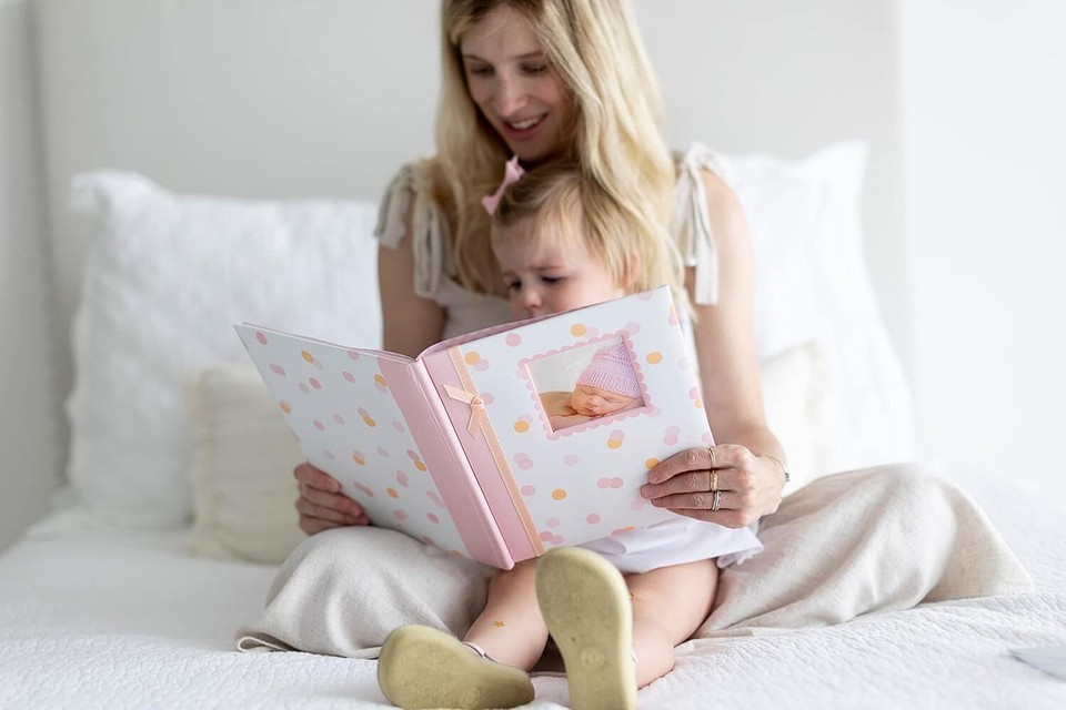 Lil Peach 5-Year Confetti Dot Pink Baby Memory Book makes the perfect baby shower or gift registry gift for baby girl; includes 42-guided journal pages with space for photos and a 4? x 4? cover photo insert