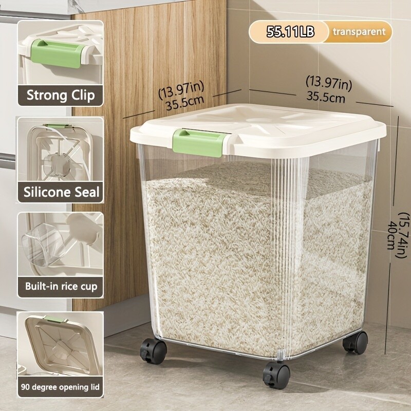 Large Capacity Airtight Rice Storage Bin ? Insect Moisture Resistant with Built-In Measuring Cup, Flip-Top Lid Wheels for Easy Mobility ? Ideal for Grain, Flour More