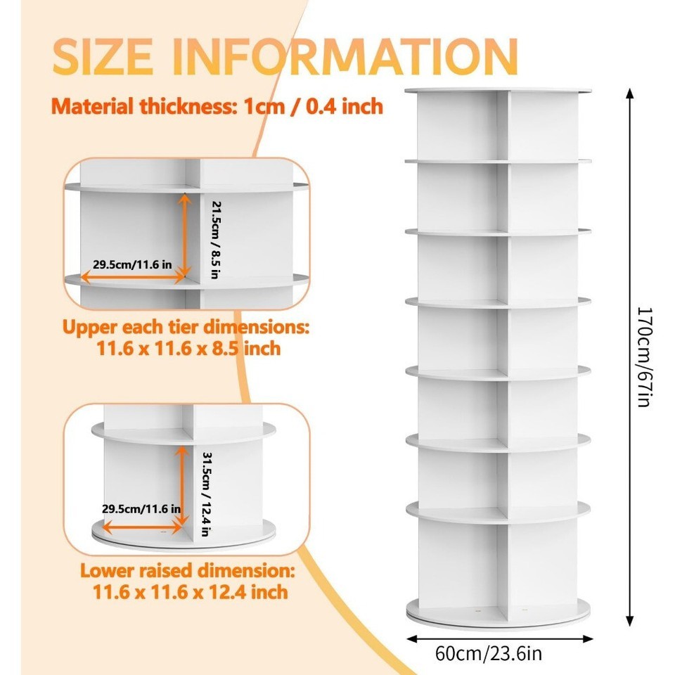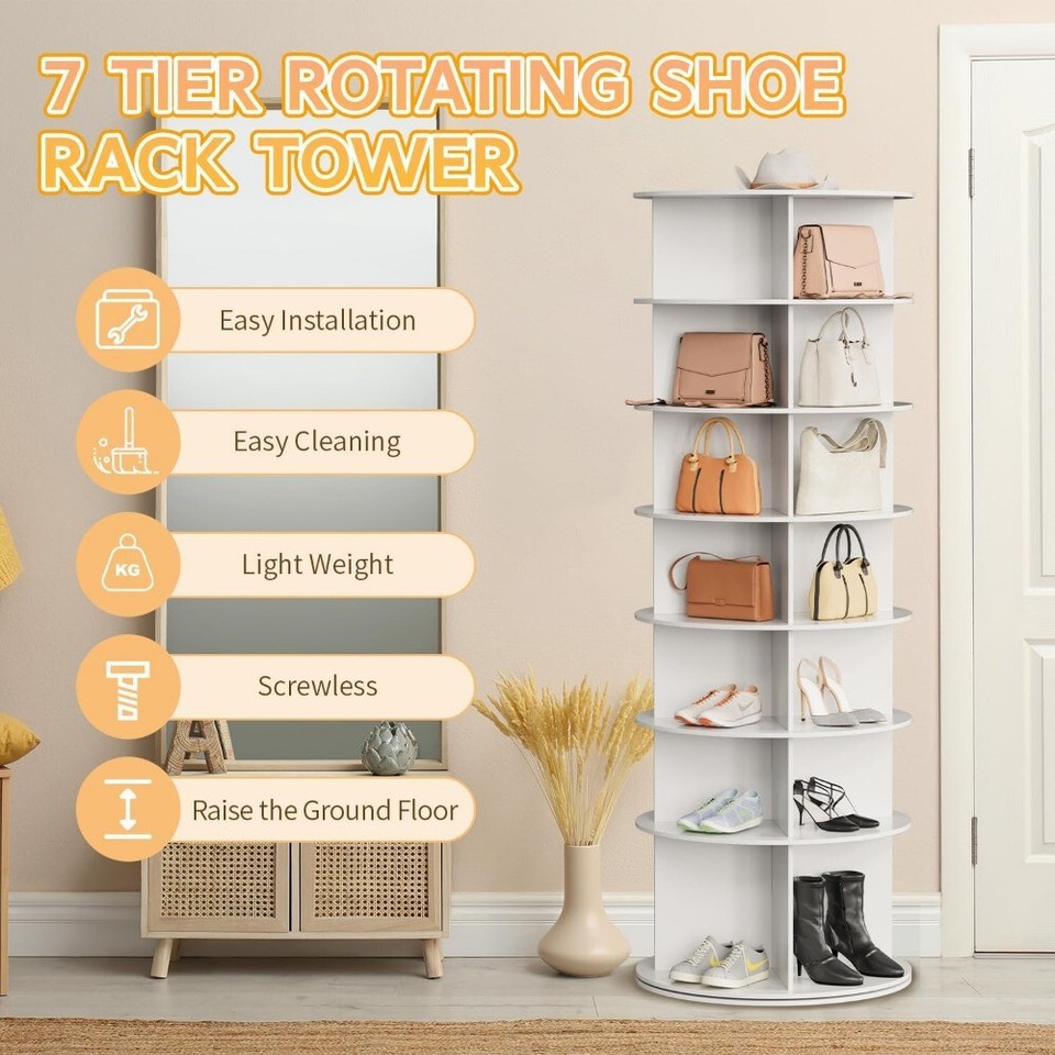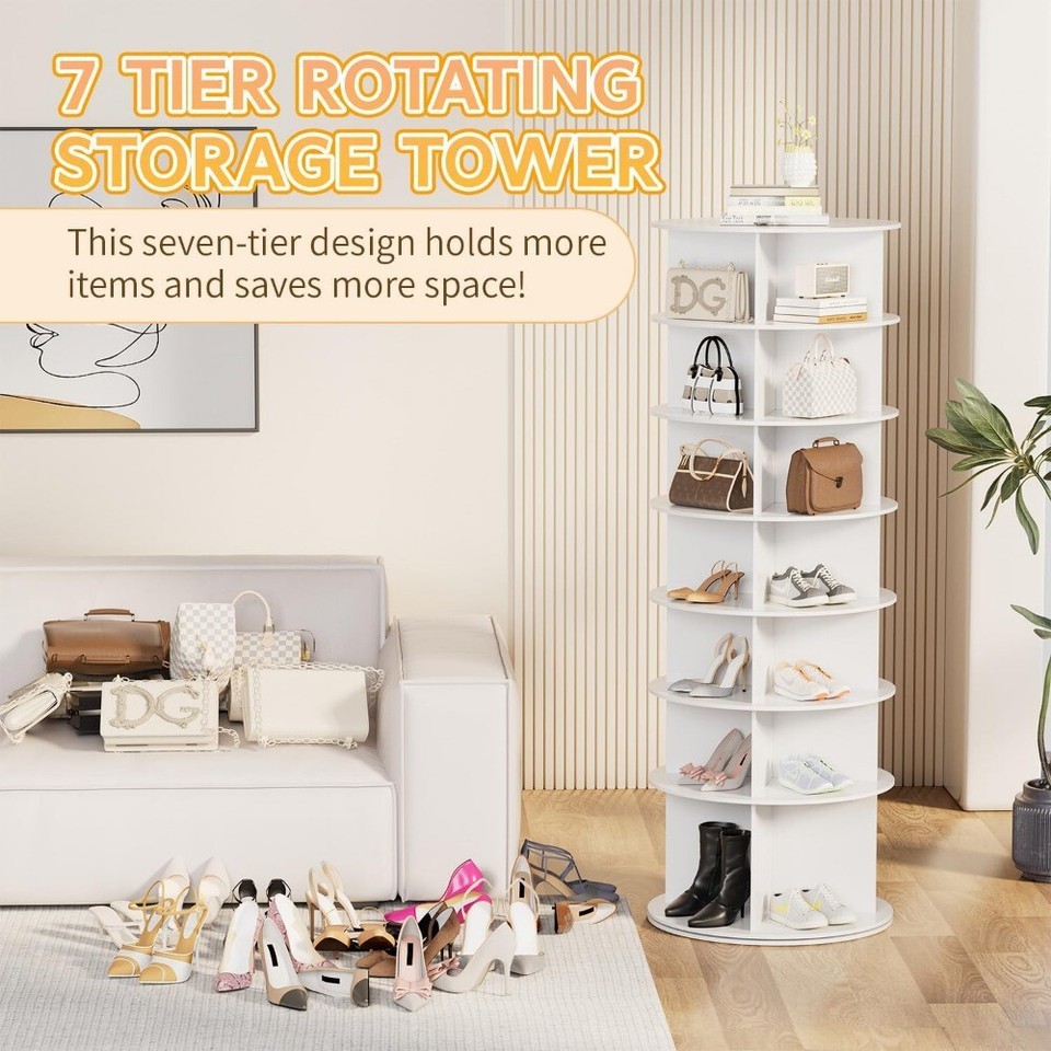 7-Tier Rotating Shoe Rack Tower – 360° Swivel Organiser for Boots & Heels, White