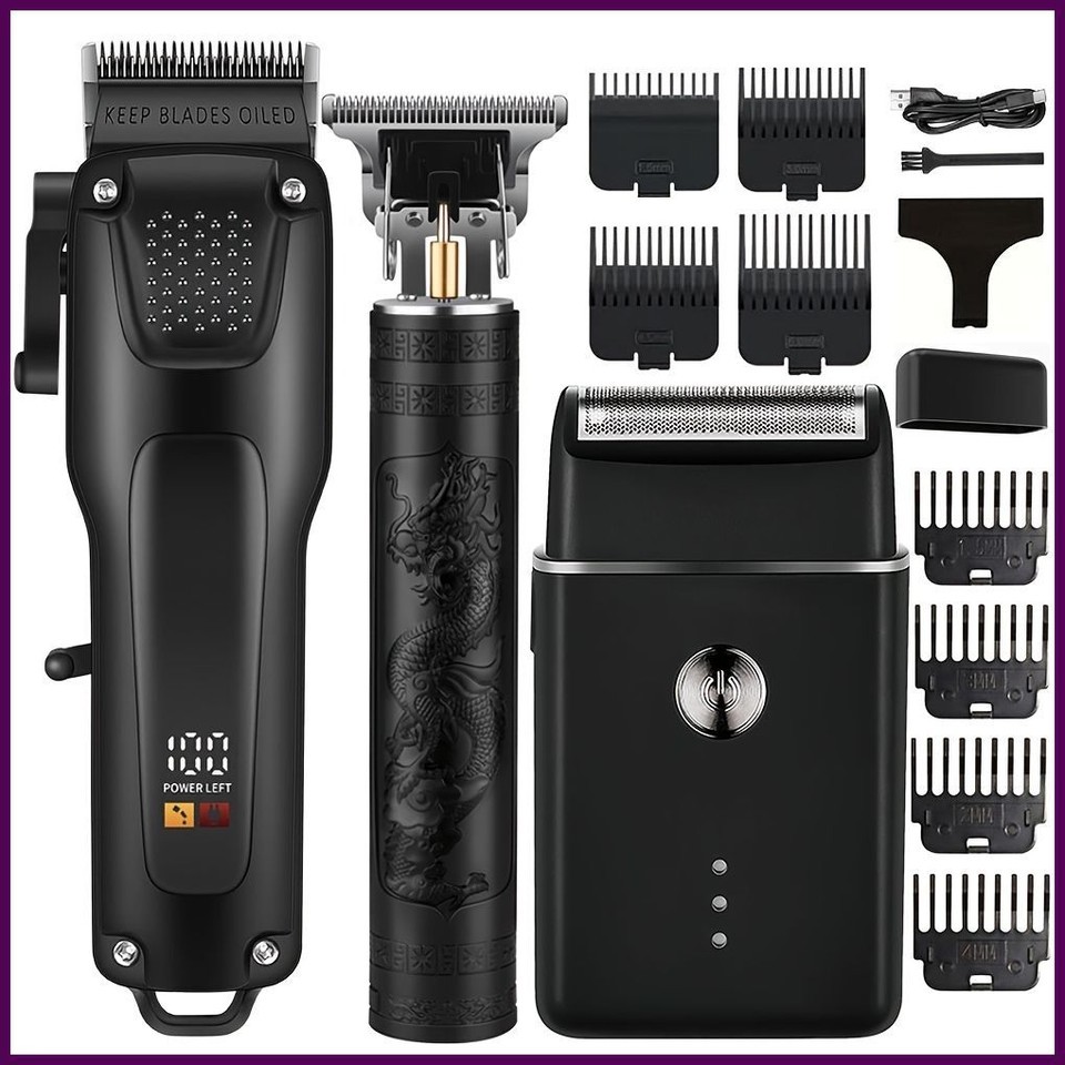 ?? 3pcs Professional Hair Beard Grooming Kit ? Cordless Clippers Set with LED Display