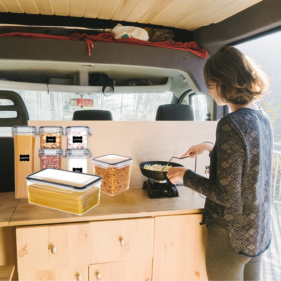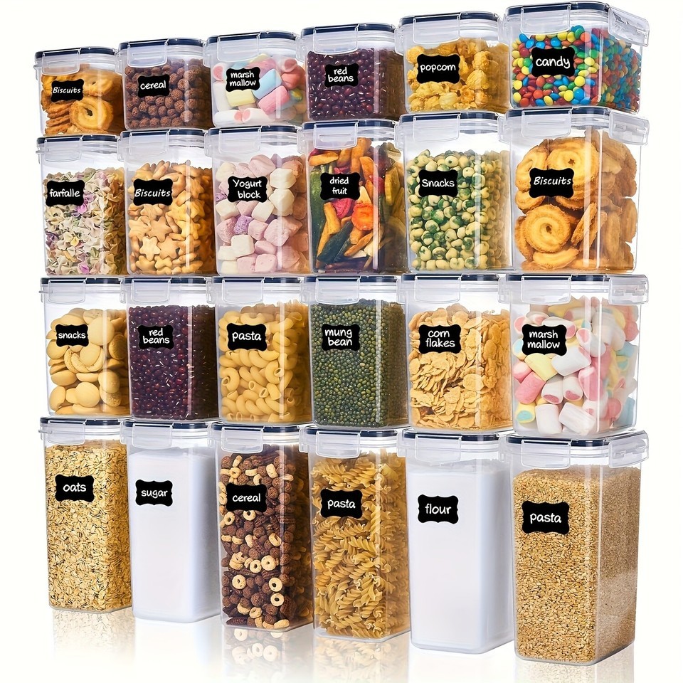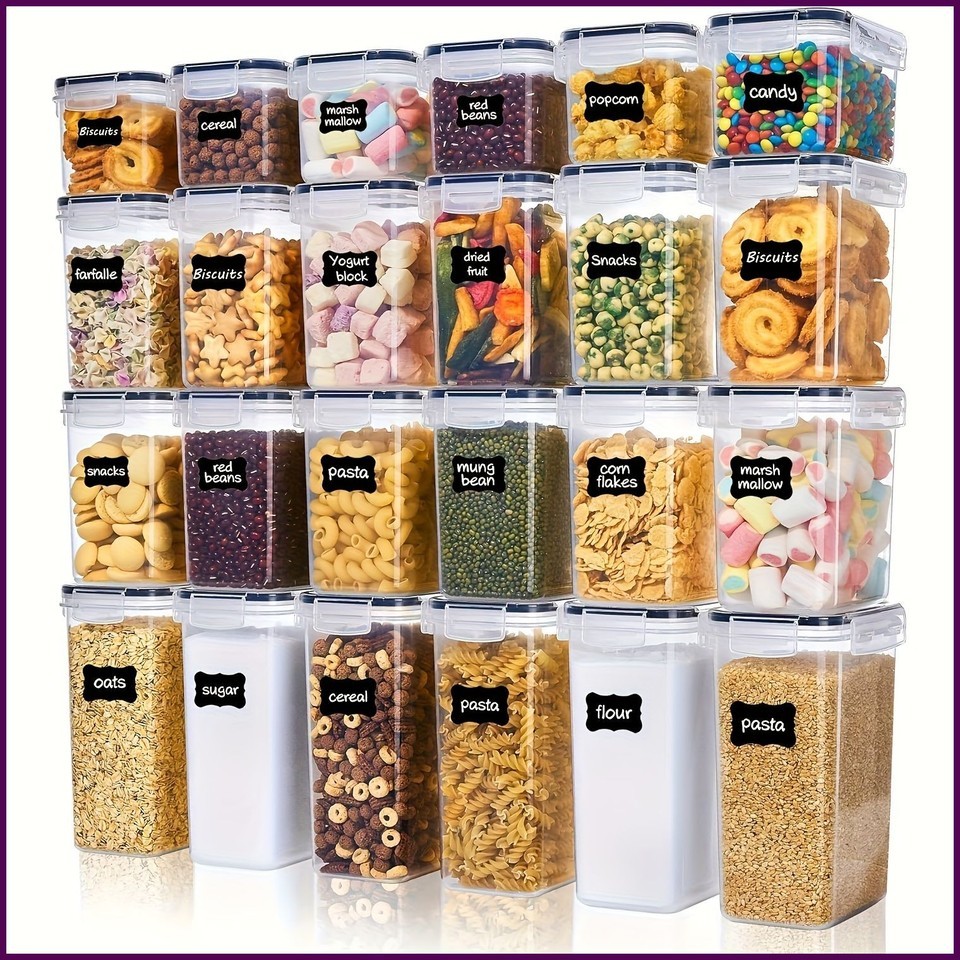 [24pcs BPA Free Containers] 24pcs Airtight Food Storage Containers, BPA Free Plastic RV Kitchen Storage | Dry Food Canisters for Flour, Sugar And Cereal with Labels | Suitable for Home Scenes, Without Battery