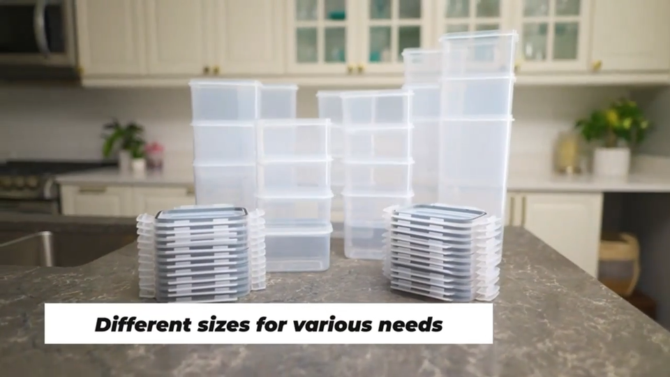 4 Convenient Sizes: Includes 6 Tall (2.4L), 6 Large (1.6L), 6 Medium (1.2L), and 6 Small (0.8L) containers to suit all food storage needs.