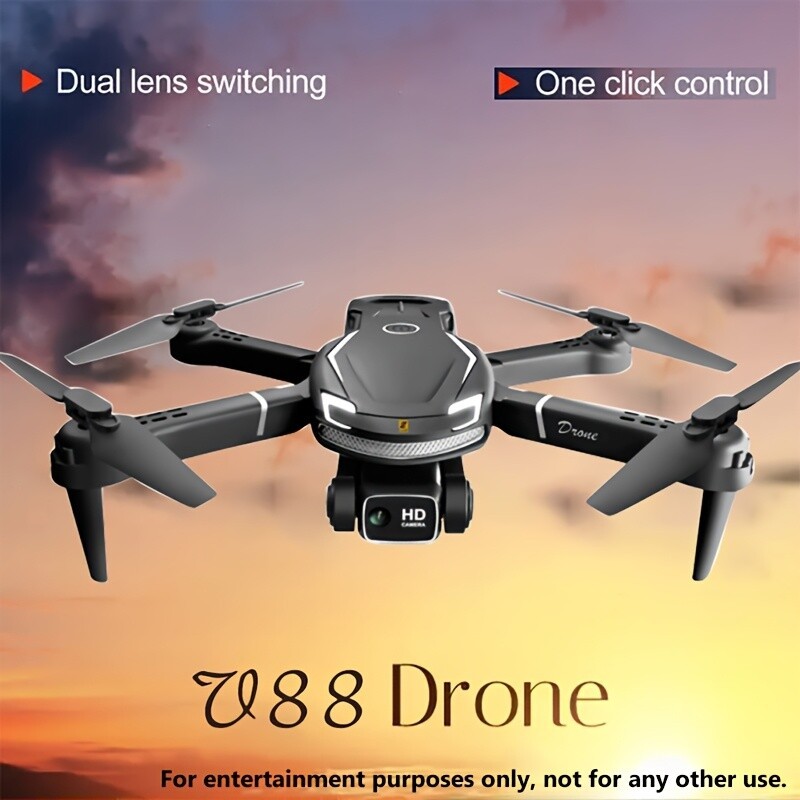[Dual Camera Drone] V88 Dual Camera Drone | Altitude Hold, Headless Mode, 360 Stunt Roll, Obstacle Avoidance, HD Camera, ABS Material - Auto Return Rechargeable Lithium Polymer Batteries