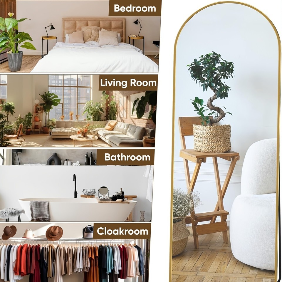 This versatile mirror can be freestanding, wall-mounted, or leaned against the wall, making it suitable for bedrooms, dressing areas, living rooms, or hallways. Built with explosion-proof shatter-resistant glass and a sturdy base, it offers both safety and durability.
