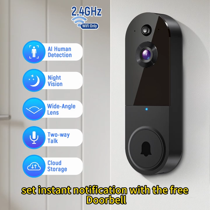 Upgrade your home security with this WiFi-enabled video doorbell. Featuring full HD 1080p video, two-way audio, night vision, and AI human detection, it ensures you never miss a visitor or package delivery. Connect easily to your smartphone for real-time alerts, monitoring, and cloud storage.