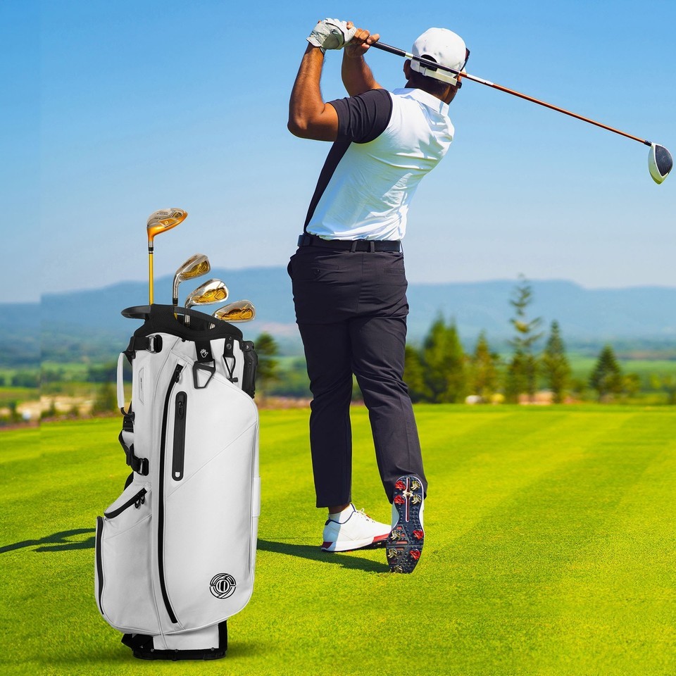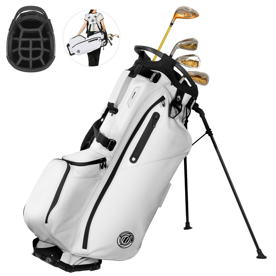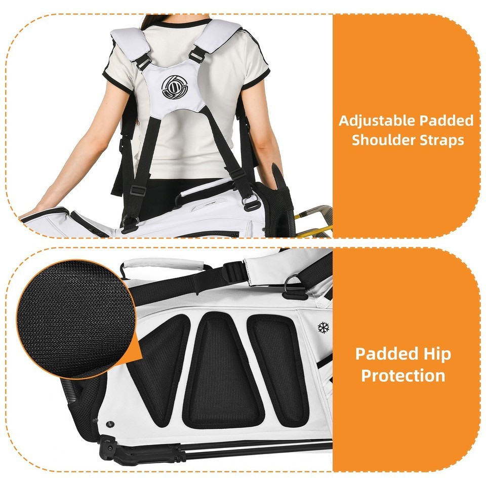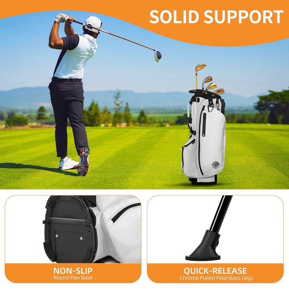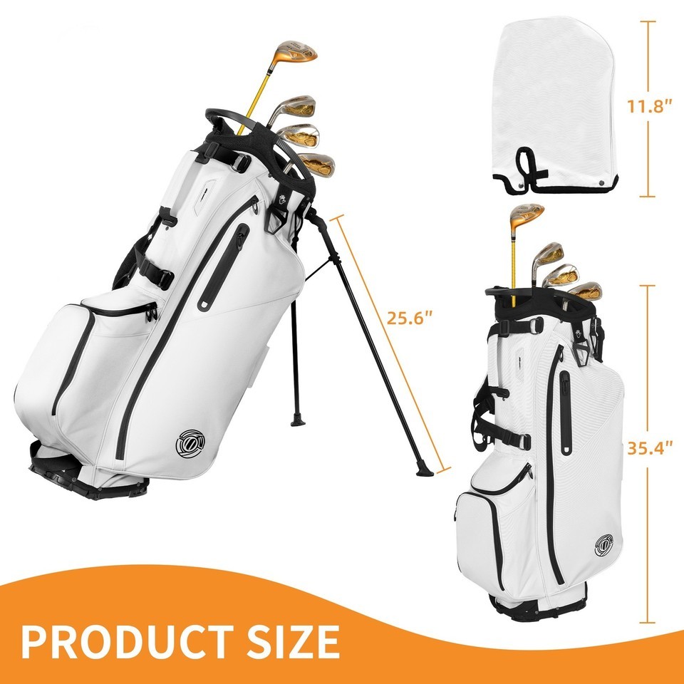 14-Way Lightweight Golf Stand Bag with Double Strap, Dividers & Rain Hood –White