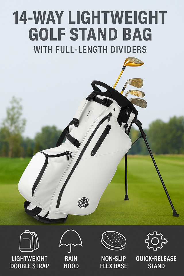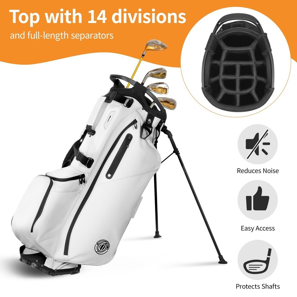 14-Way Lightweight Golf Stand Bag with Double Strap, Dividers Rain Hood ? White