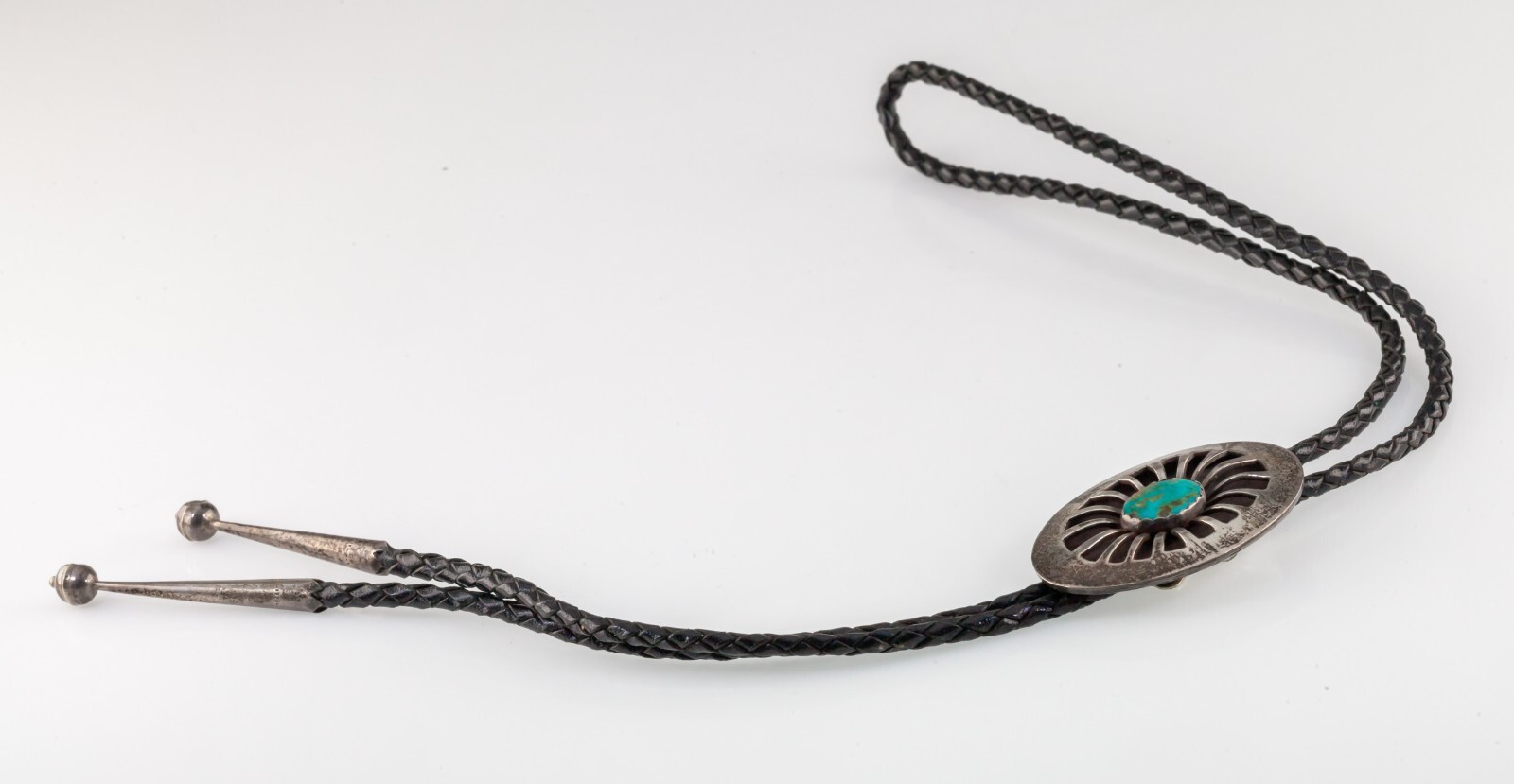 Gorgeous Sterling Silver Sunburst Bolo Tie with Turquoise Accent