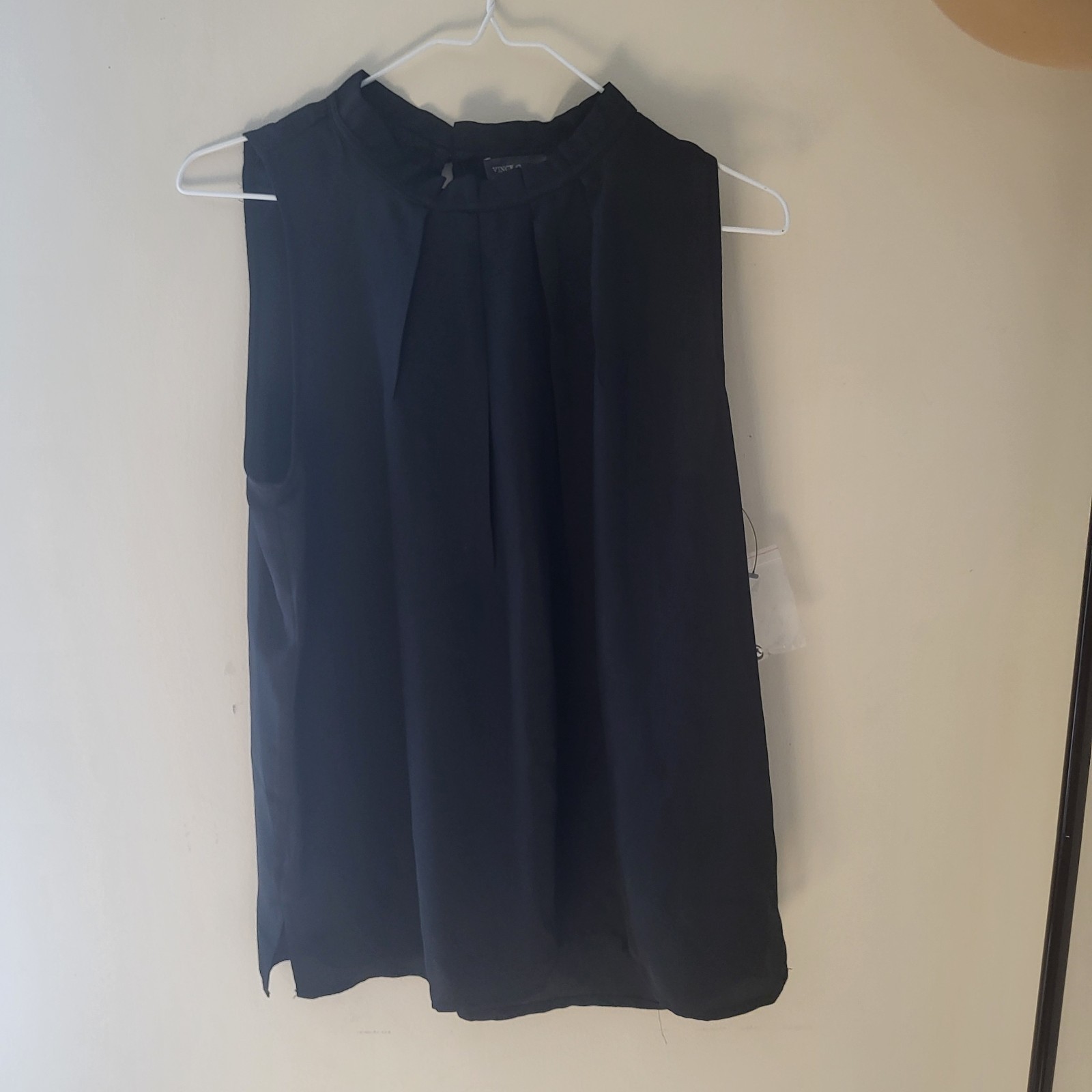 This tank top blouse is still new with tags! Pit to pit measures approx 19". 100% polyester