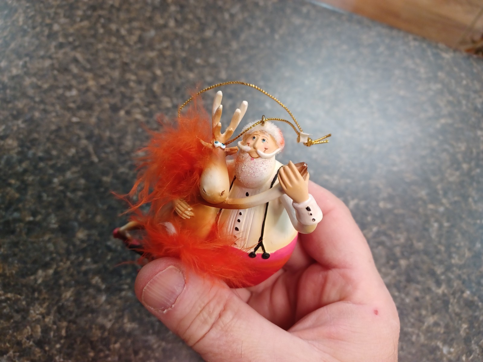 Resin Hand-Painted Santa With Reindeer In Orange Feather Tutu Dancing The Tango
