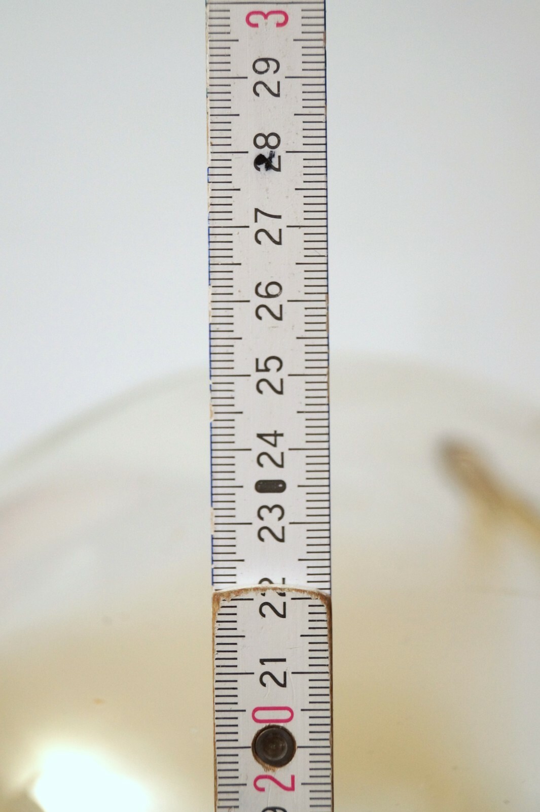 Ecran en verre d'origine des annees 70 comme Peil Cleaner, Limburg, etc. Diametre env. 24 cm, ouvrant a l'exterieur env. 7 cm / interieur env. 6,3 cm. Ventes sans decoration ni lampe! Expedition gratuitement en Allemagne!