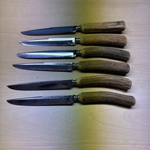 Vtg Solingen Baron Steak Knives, Stag Antler Handles Stainless Lot of 6 Germany. Items are used.