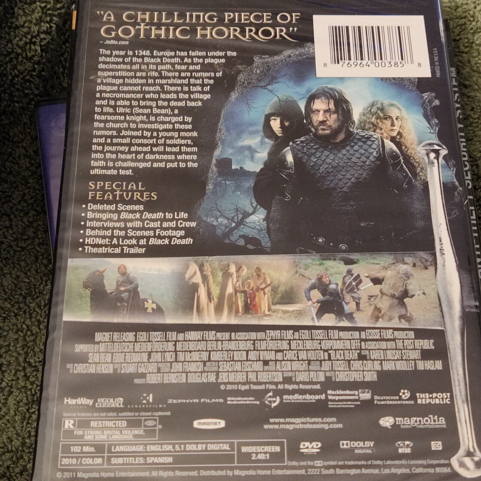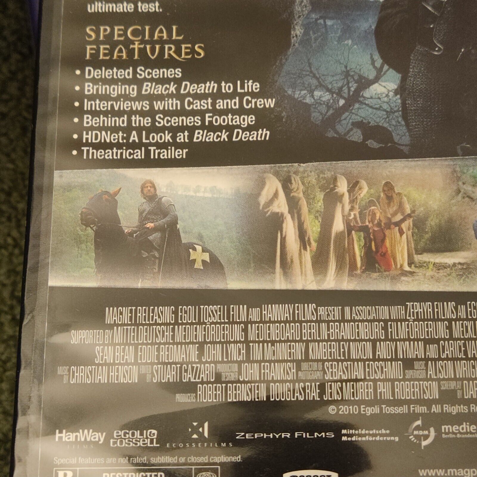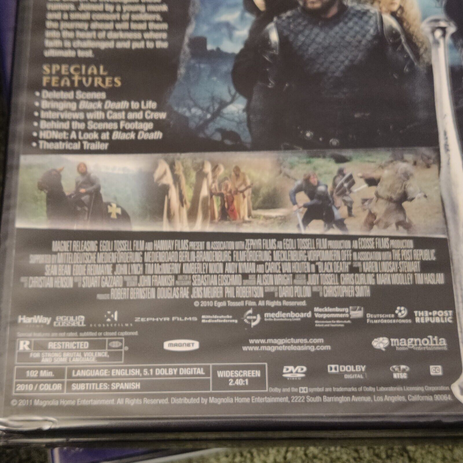 This DVD features the thrilling action and adventure film Black Death, starring Sean Bean, Kimberly Nixon, Carice van Houten, and Eddie Redmayne. With a release year of 2010, this movie is a great addition to any collection. The format is DVD and it is rated [see description].