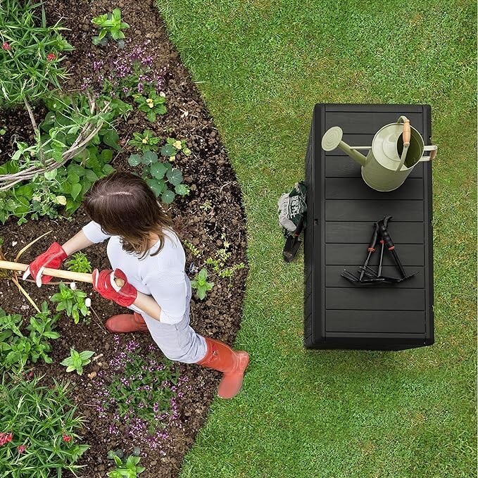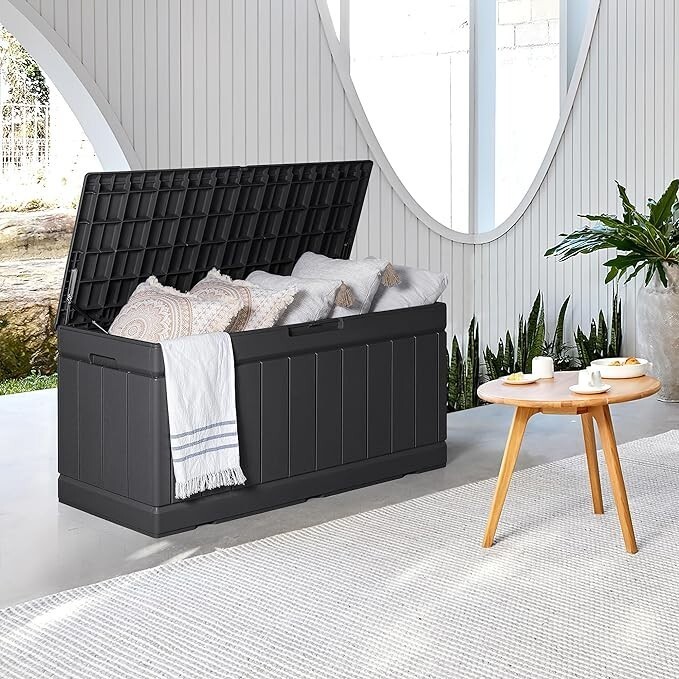 Multifunctional design: The deck box lid has a padlock design can ensure the safety of your belongings. Besides, this box is big enough that you can sit on it for a while when you don't have enough seats or are tired.