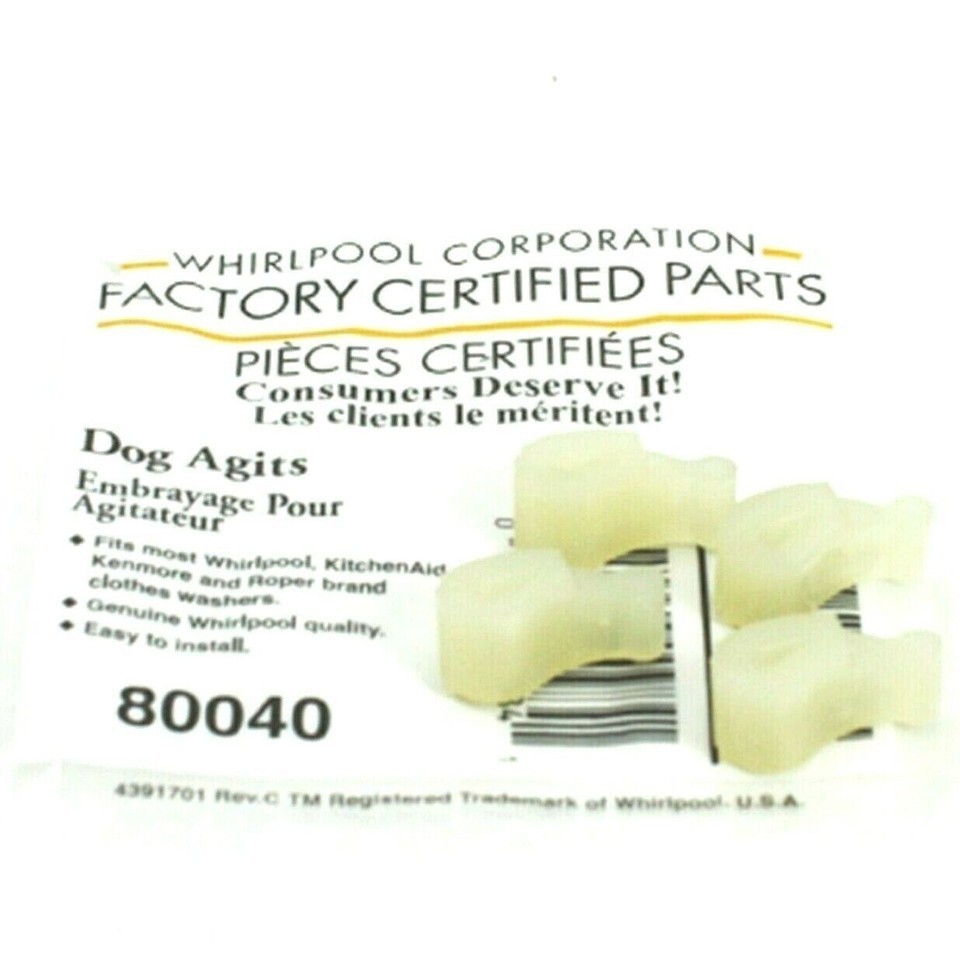 The package includes four agitator dogs and no additional hardware or tools are required for installation. Check your model number for compatibility.