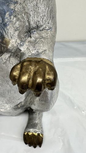 This vintage 1986 Arthur Court wine bottle holder, also known as a decanter or ice bucket, features a charming bunny rabbit design that is sure to delight collectors and guests alike. Made from durable aluminum, this piece is perfect for holding and displaying your favorite bottle of wine or other beverage of choice. The attention to detail in the bunny rabbit design is exquisite, making this piece a rare and unique addition to any collection.