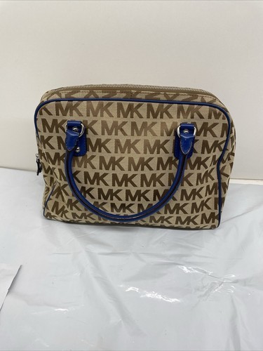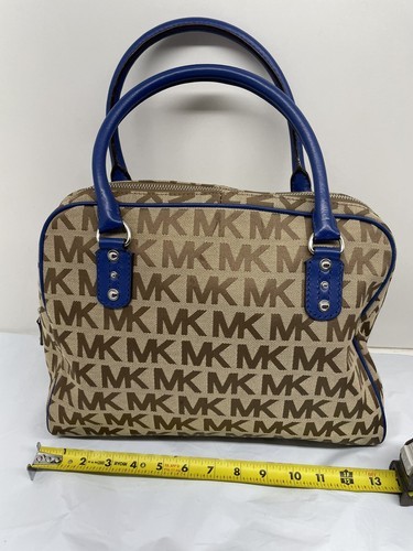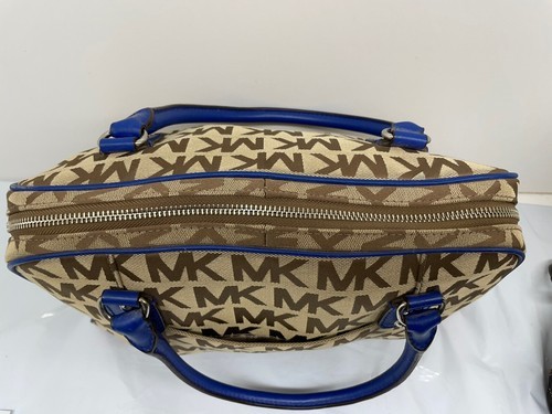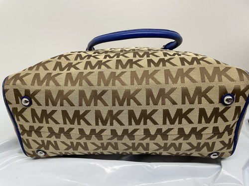 Michael Kors Signature Dome Satchel Purse With Blue Handles/Cross Body Strap+ DB