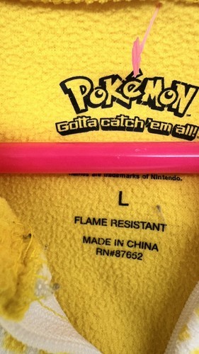 Nintendo 2021 POKEMON PIKACHU Hoodie One-piece Pajamas SZ Large (12/14) Kids