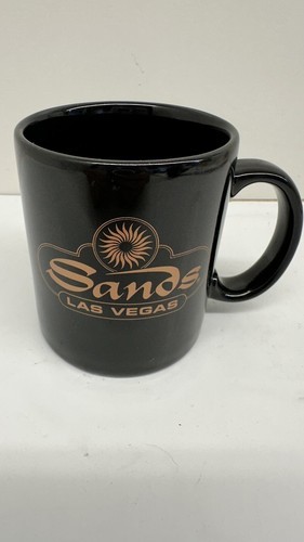 Take a trip down memory lane with this Sands Hotel Casino Coffee Cup Mug. This souvenir mug features a classic black color and a 2-sided graphic design, depicting the iconic Rat Pack and Las Vegas Tourist theme. With a capacity of 10 ounces and a size of 3 3/4" X 3", this mug is perfect for your morning coffee or as a collector's item.