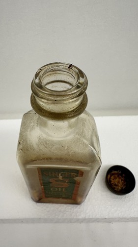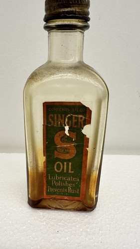 This is empty. This antique Singer sewing machine oil bottle is a great addition to any sewing collector's inventory. The embossed design and screw-on cap give it a vintage vibe that is sure to catch the eye. This 3oz bottle is perfect for storing and dispensing your oil while working on your sewing projects. The brand and type of the bottle, Singer and Bottle respectively, make it a unique and valuable find. This item belongs to the collectibles and sewing categories, specifically in the Other Sewing Collectibles and Sewing (1930-Now) subcategories. Add this charming piece to your collection today!