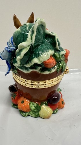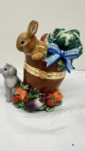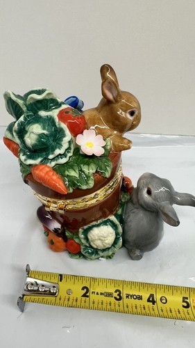 CWC Happy Easter Bunnies Spring Vegetables Hinged Ceramic Trinket Box