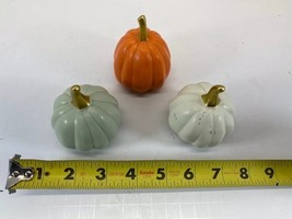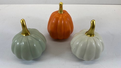 3 Littlle Ceramic Pumpkins Used. Condition is Used. I pumpkin his scratched as noted in pics. Shipped with USPS First class Mail.
