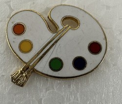 Vintage White Enamel Artists Painters Palette With Brushes Lapel Pin