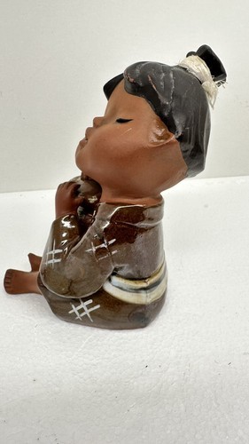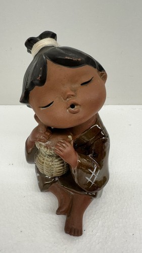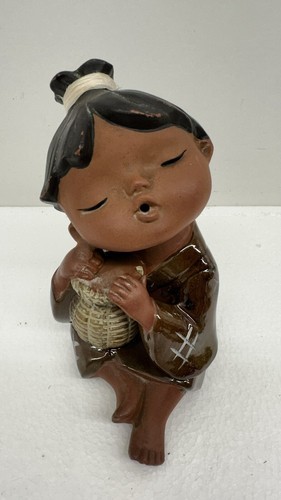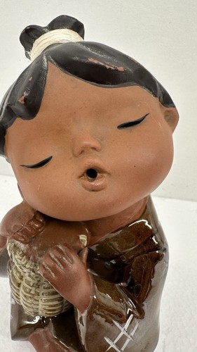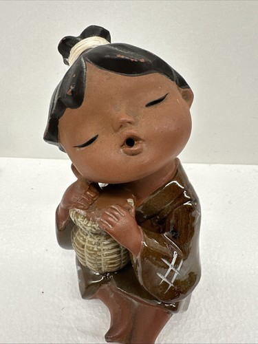 Asian child Japanese figurine Uctci Terracotta Clay Holding Basket