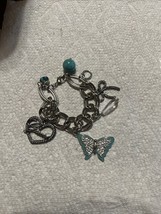 Guess Silver Metal Clear +Blue Stones Enamel Multi Charm Bracelet