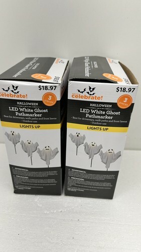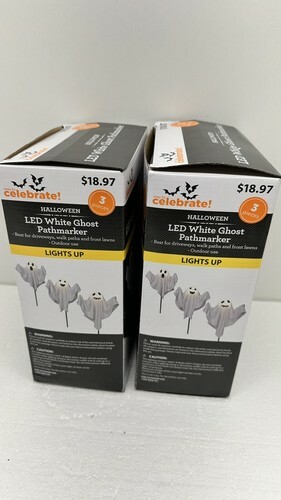 Lot of 2. Get ready for Halloween with this 3-piece outdoor decoration set from Way To Celebrate. The set includes lawn stakes, pathway lights, and a connectable light bulb with a warm white color. The bulb is powered by corded electric and has a maximum linkable units of 240.