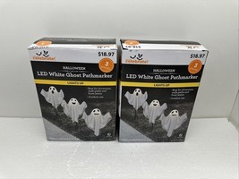 Halloween 3-Piece Outdoor White Fabric LED Light-Up Ghost Lawn Stakes Lot Of 2