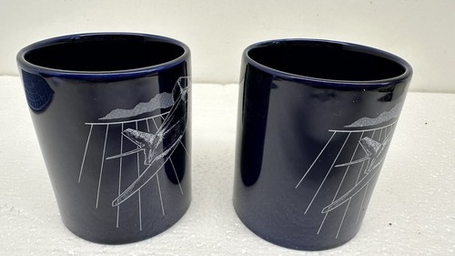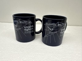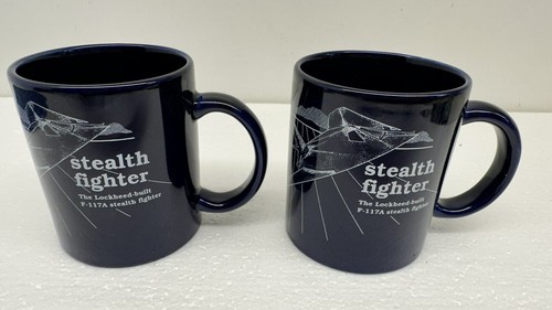 Lockheed F-117A Stealth Fighter Coffee Cups / Mugs Dark Blue 12 ounce Lot Of 2