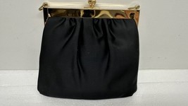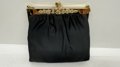 Does not have a strap included. This vintage black handbag purse is a timeless accessory for any woman. Its classic design and attachment to a coin purse make it a unique find for collectors. The purse is made from high-quality materials, ensuring durability and longevity. The coin purse is also attached, making it a convenient option for keeping coins and cash. This purse is perfect for anyone looking for a vintage accessory to complete their outfit.