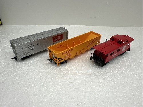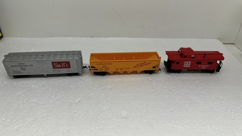 3 Vintage Tyco HO Train Cars Union Pacific Hopper Swift Freight AT&SF Caboose