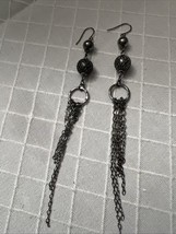Pewter metal mesh chain dangle 5 inches long tassel earrings